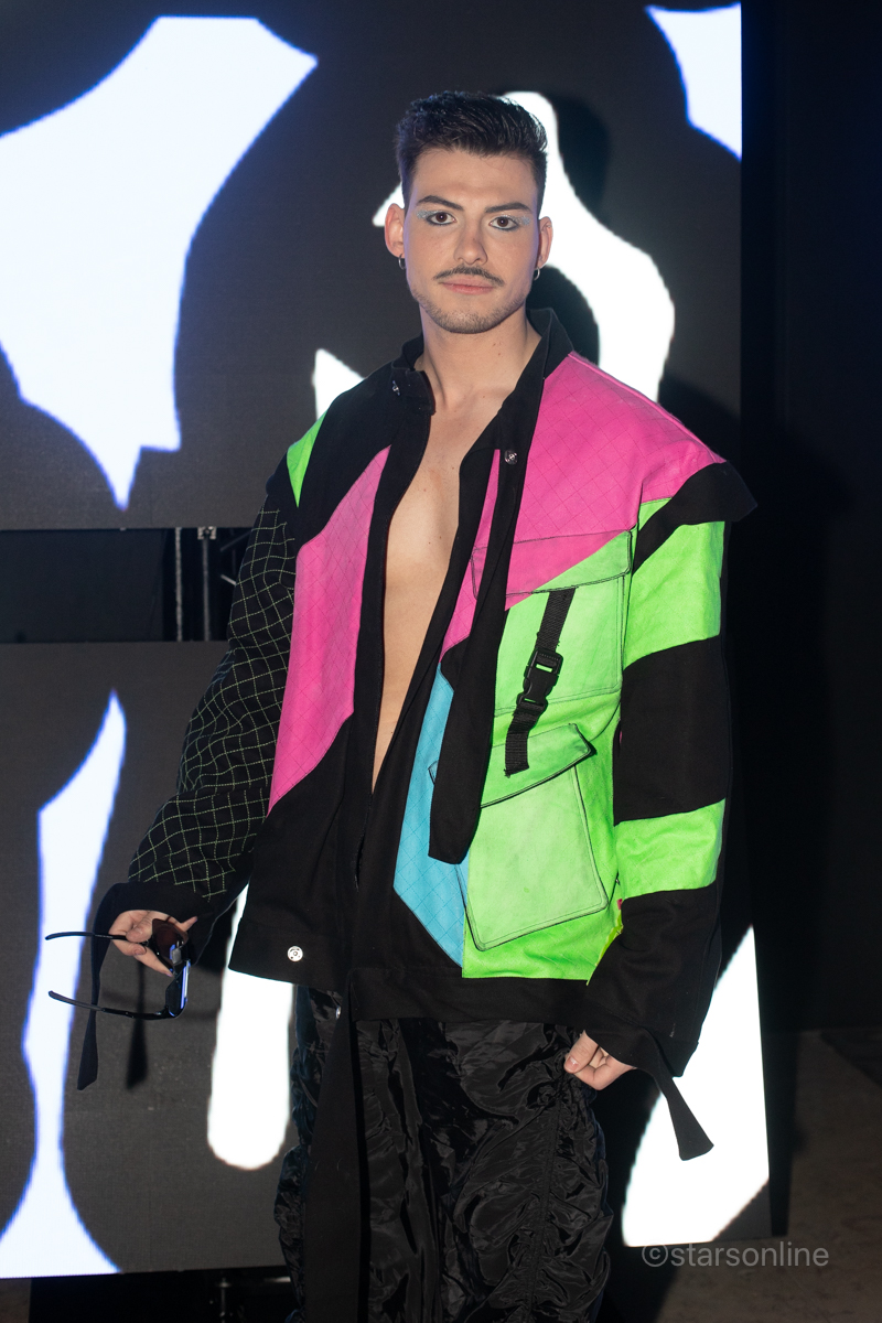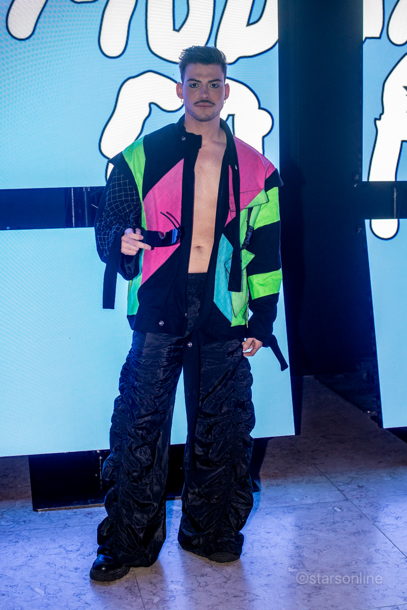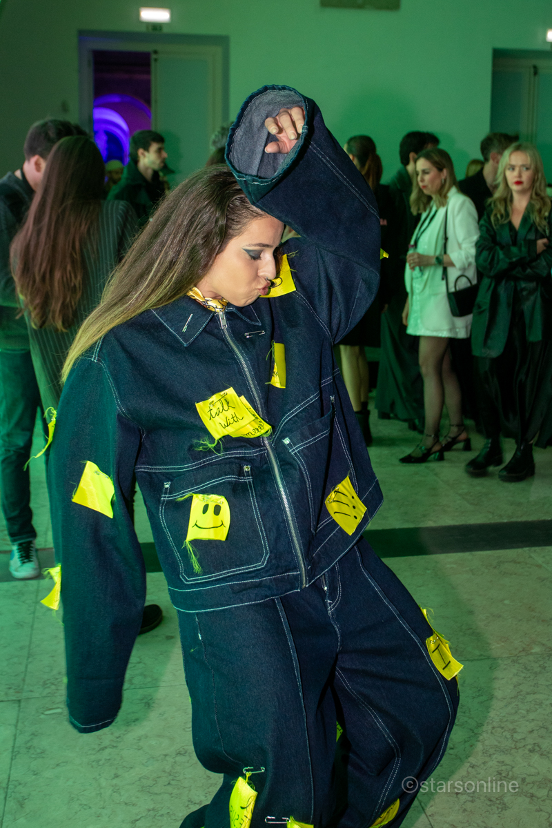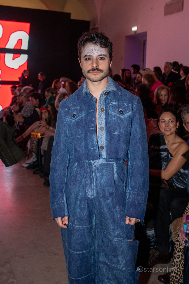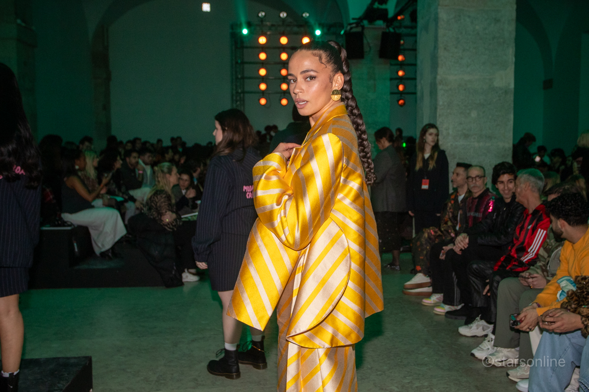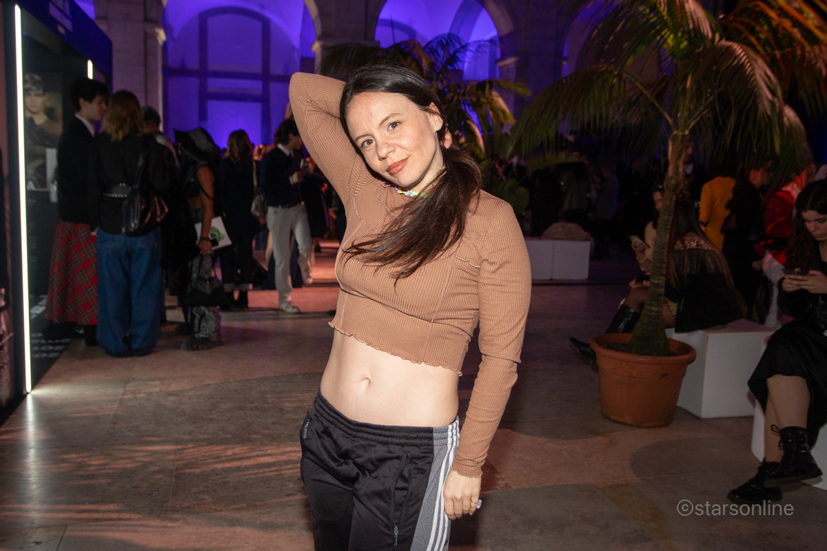 A estilista Mar Relva com uma das duas criaçãoes. Evento: ModaLisboa Capital, Páteo da Galé, Lisboa, 08.03.2025