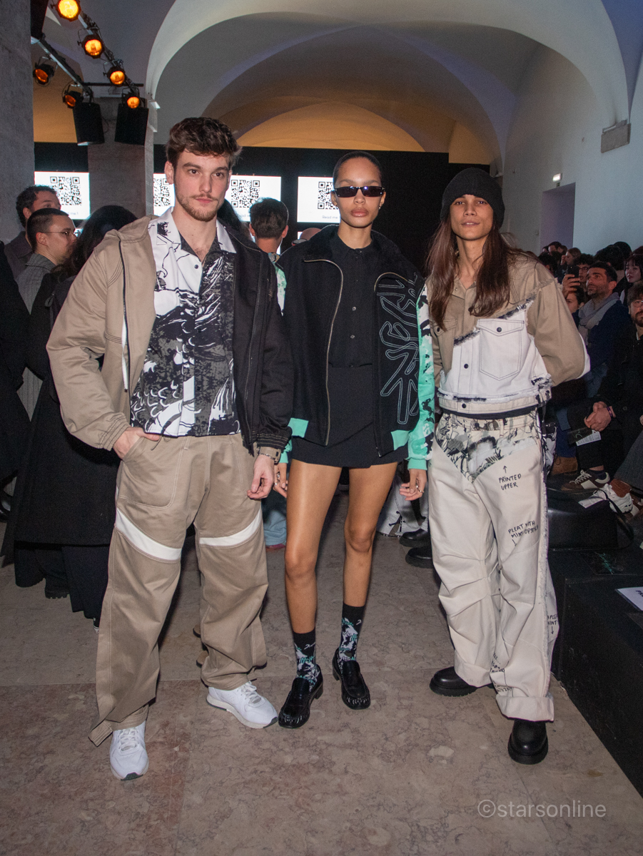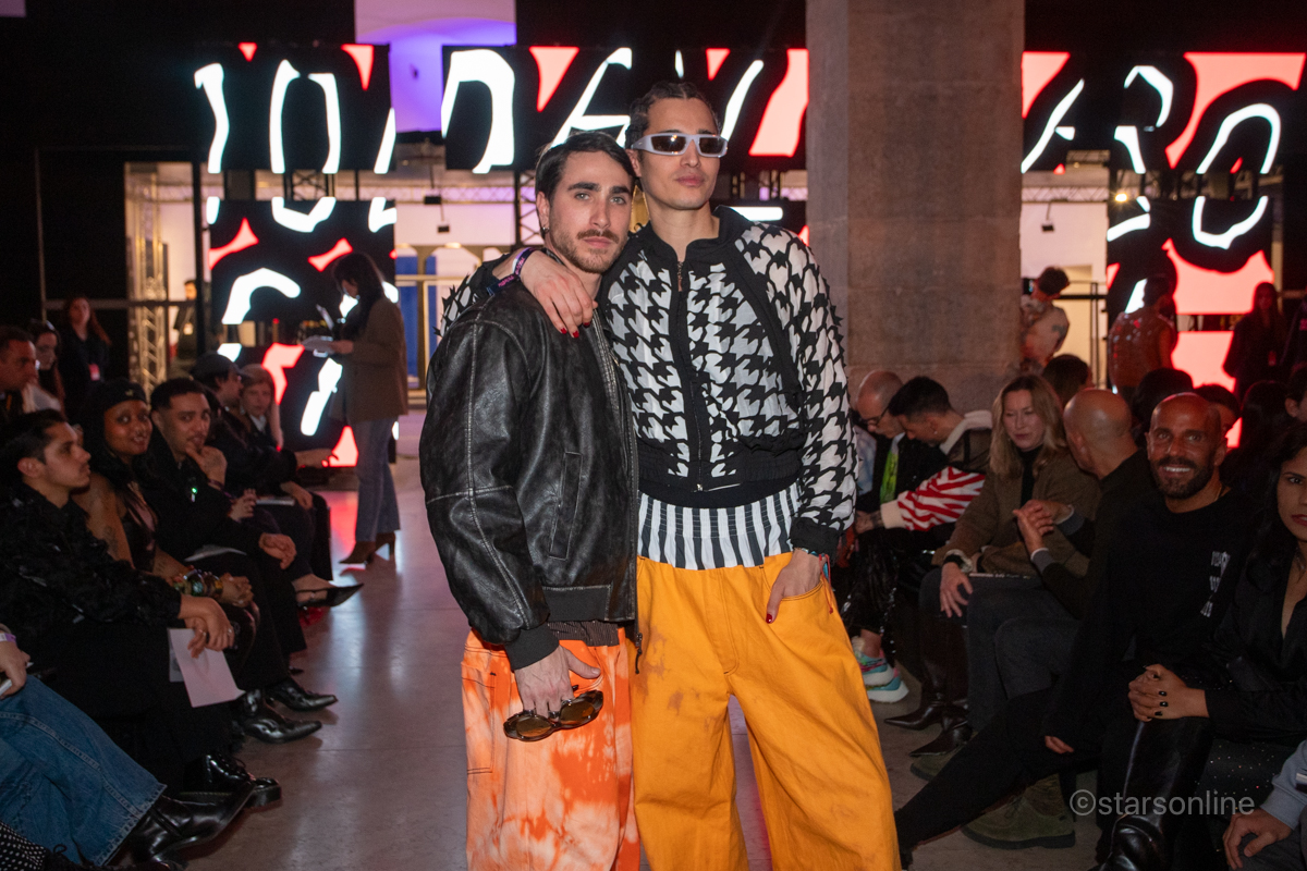 Rui Pedro Silva, Simão Fumega e namora Izabele. Evento: ModaLisboa Capital, Páteo da Galé, Lisboa, 09.03.2025
